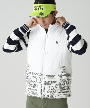合繊×フリース片面起毛中綿フルジップアップベスト <ストリート花柄>