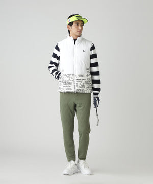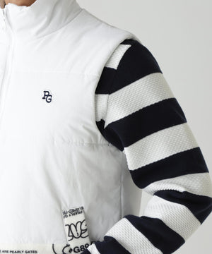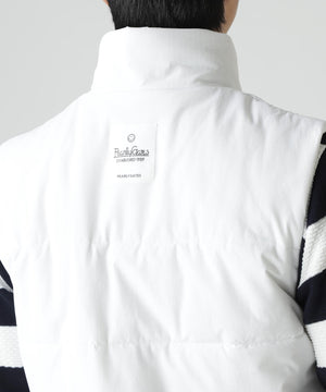 様々なインナーとの組みわせでコーディネイトが楽しめる、異素材の切替しがデザインポイントの中綿ベストアイテムです。