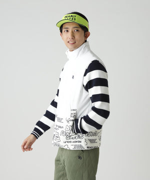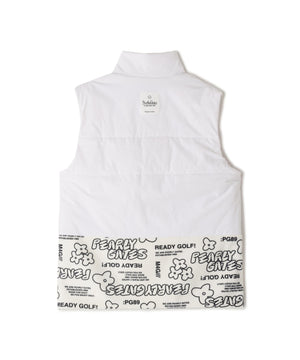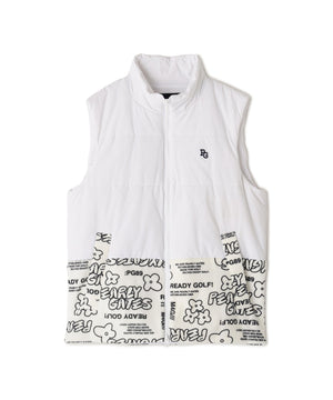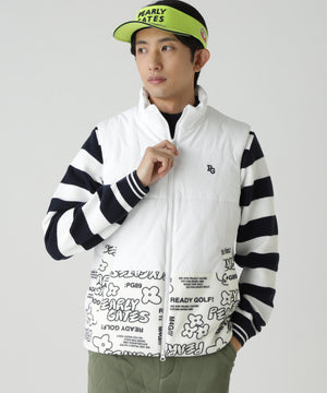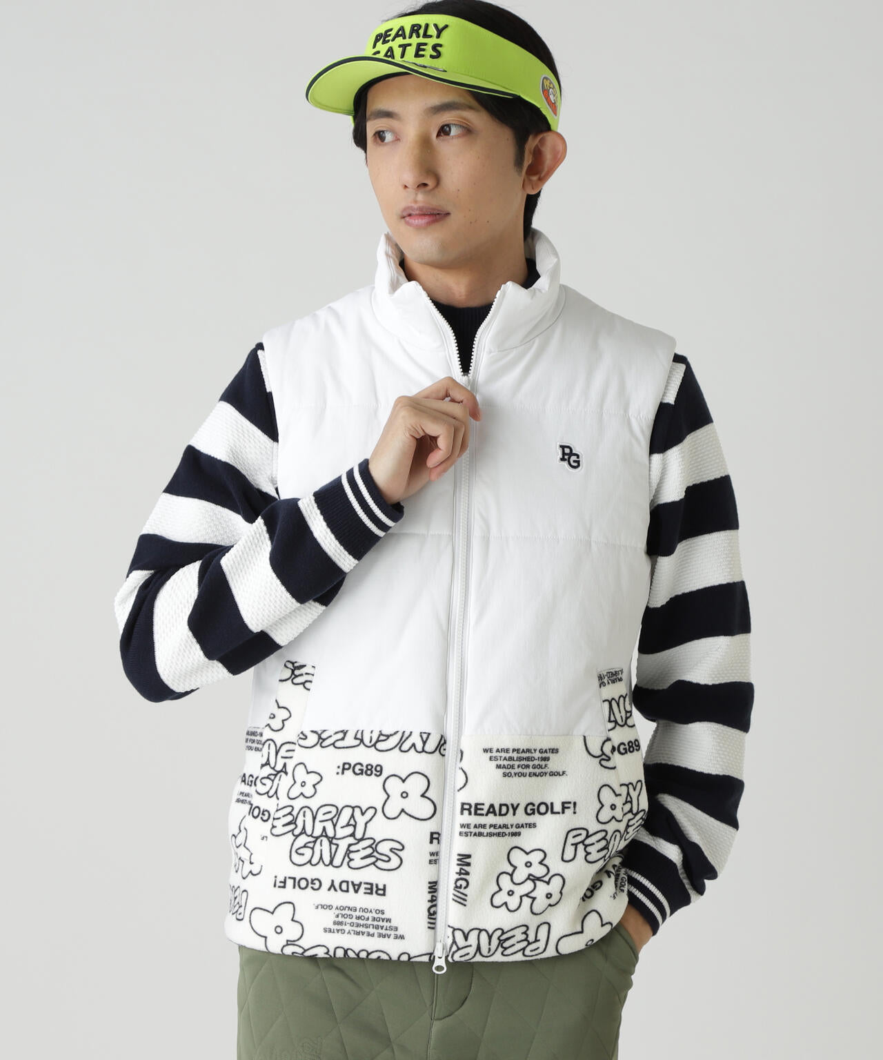 軽くて暖かいフリース素材を部分使用して保温性を高めた、ストリート花柄 合繊×フリース片面起毛中綿フルジップアップベスト。