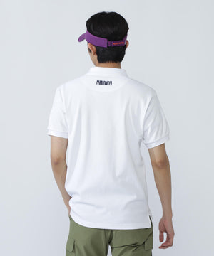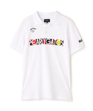フォント、デザイン、カラーリングをアレンジして仕上げたフレンドリーロゴを登場させた、フルダルポップコーンカノコ半袖ポロシャツ。