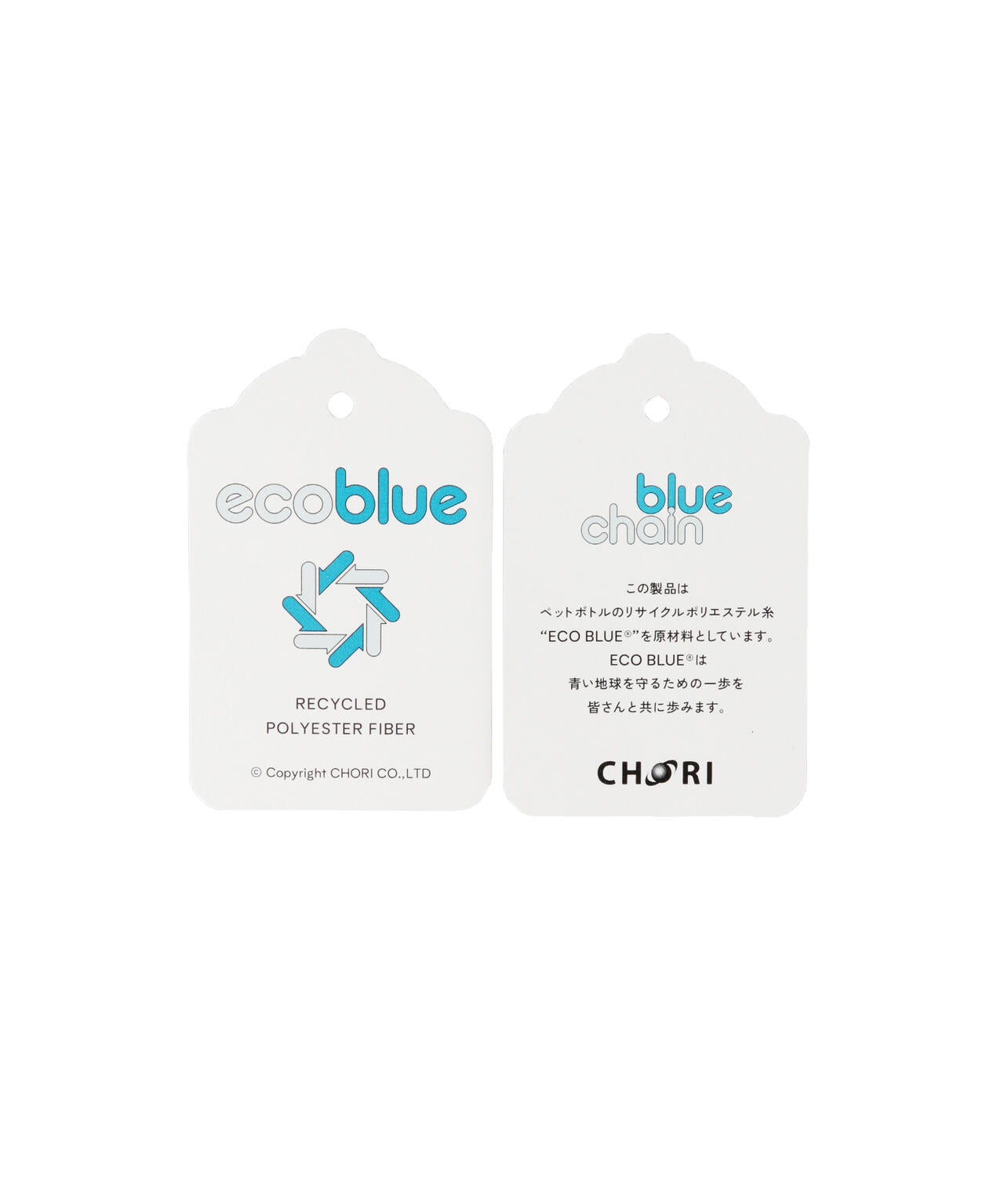 バネ状の構造により伸びて戻る性質を持つ伸縮性機能糸のTEXBRIDと、吸水性のある再生ポリエステル素材のECO BLUEを採用。