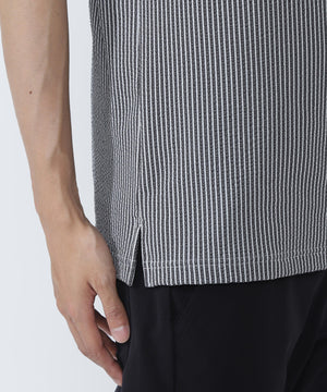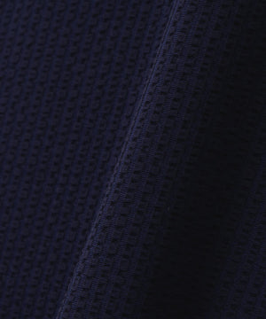 また、サッカー生地表面の凹凸形状により肌に触れる面積が小さく通気性が高いため、ゴルフからデイリーまでより涼しく快適な着用感を体感できます。