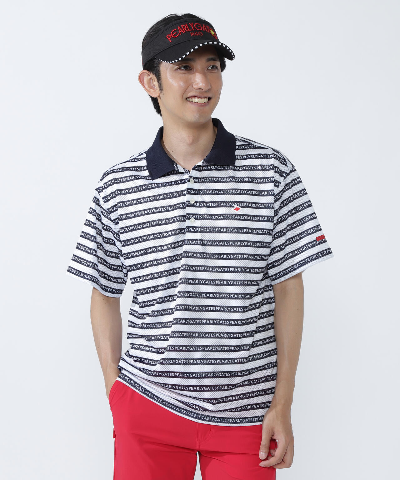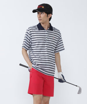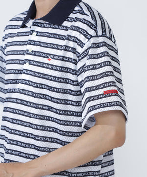 KAZEメッシュ半袖ポロシャツ <ロゴボーダー柄>