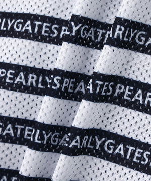 特殊なメッシュ生地により風通しが良く涼しさを感じられる、ロゴボーダー柄KAZEメッシュ半袖ポロシャツ。