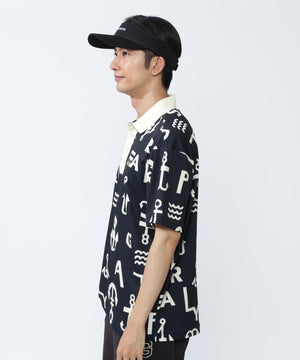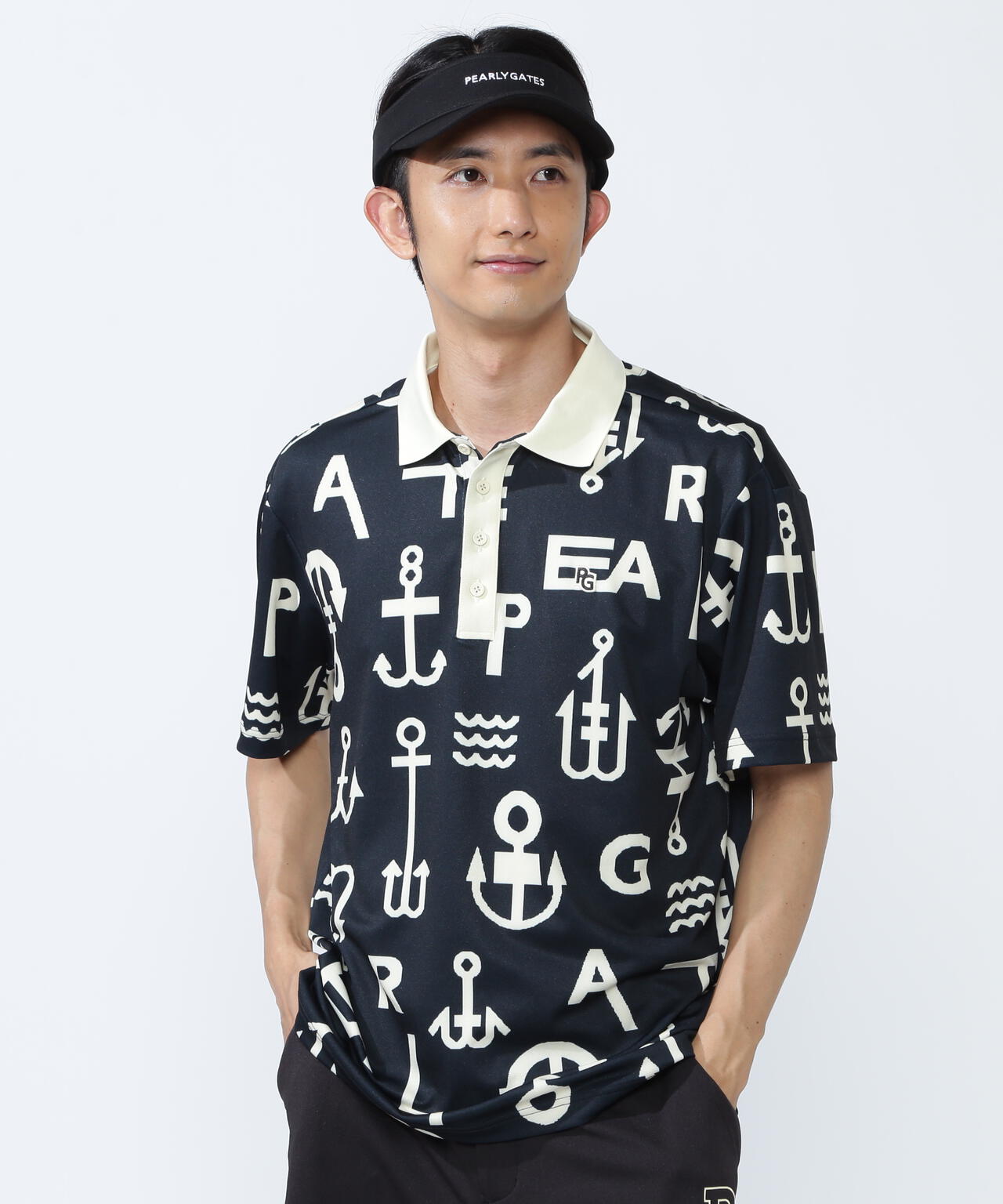 梨地半袖ポロシャツ <アンカーロゴ総柄>