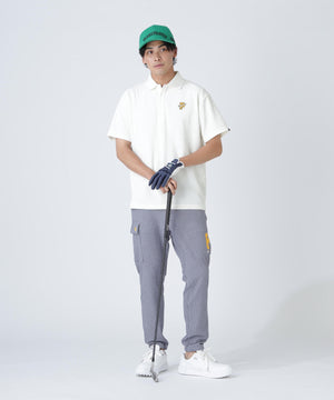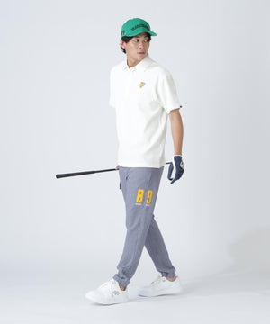 高機能ジャージ素材のアクセンシャルゼブラとワッフル織りの凹凸感を組み合わせた、ゴルフシーンに最適な生地を使用したポロシャツです。