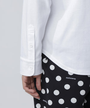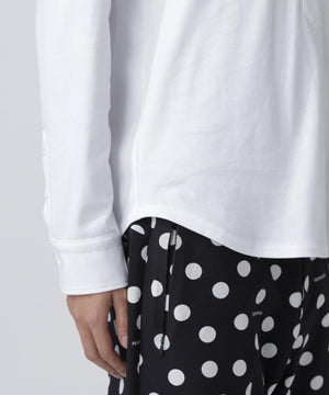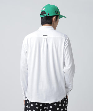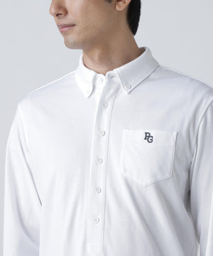 きちんと感と同時にカジュアルな印象を与えてくれる、TCドットジャガード長袖ボタンダウンカットソー。