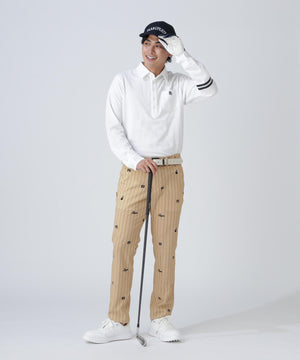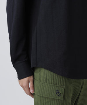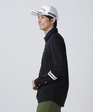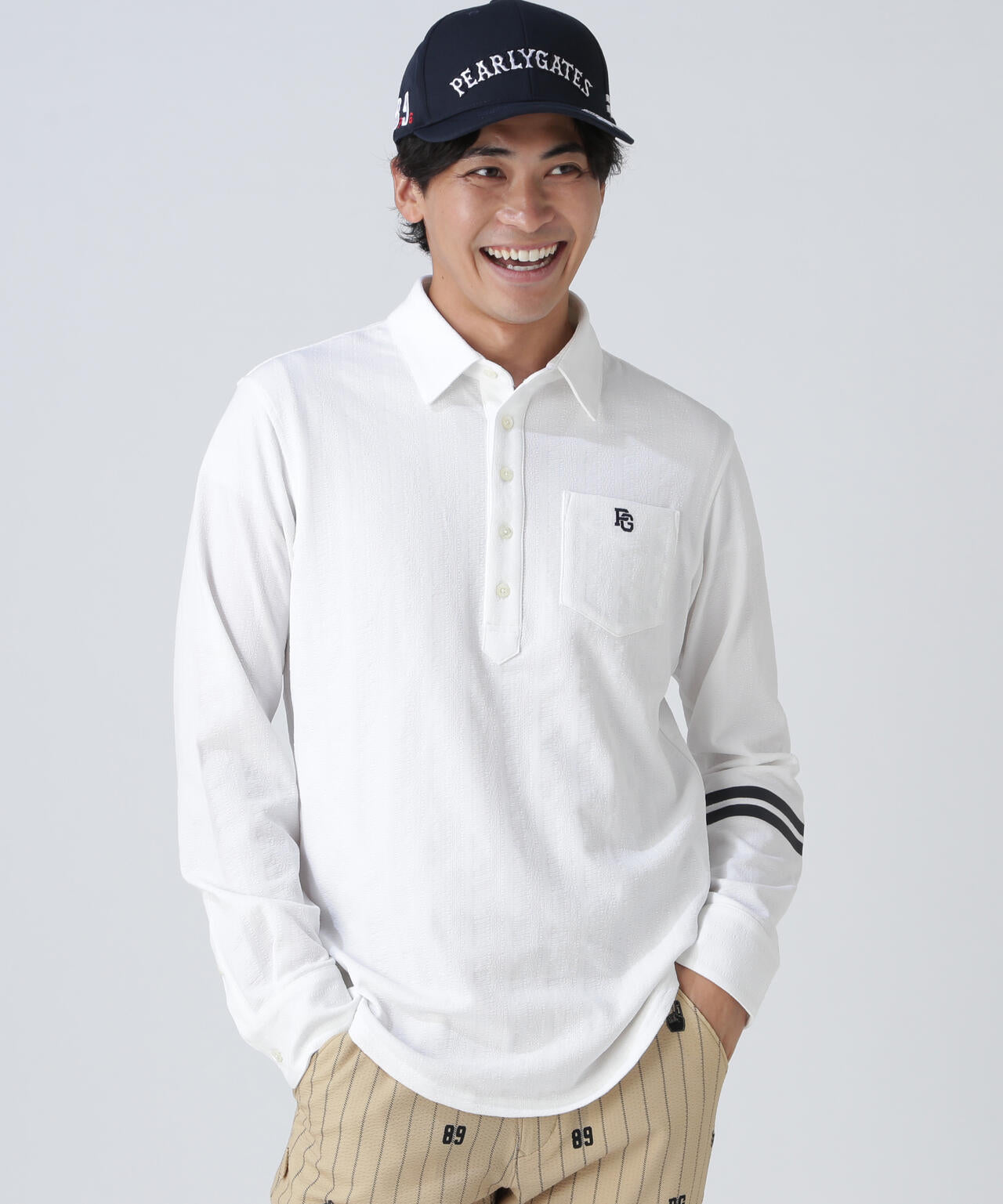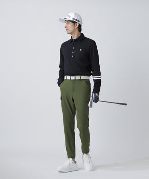 ドライタッチな風合いと伸縮性の良い素材を使って、ゴルフシーンにおいて快適に着用できる一枚になっています。