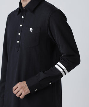 ボトムにアウトしてもバランスよく着こなせる裾をラウンドさせたカジュアルな雰囲気で、ゴルフにデイリーユースに幅広いコーデに対応します。
