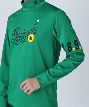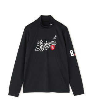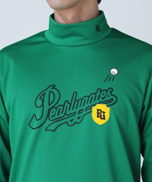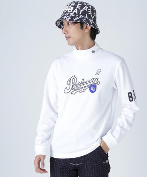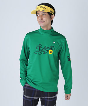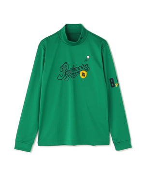 スポーツ気分あふれるフロントロゴがコーデのポイントになる、鹿の子ダンボールゼブラ長袖ハイネックカットソー。