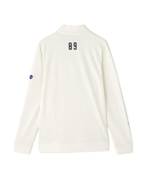 スポーツ気分あふれるロゴがコーディネートのポイントになる、スーパーファインウールフリース長袖ハイネックカットソー。