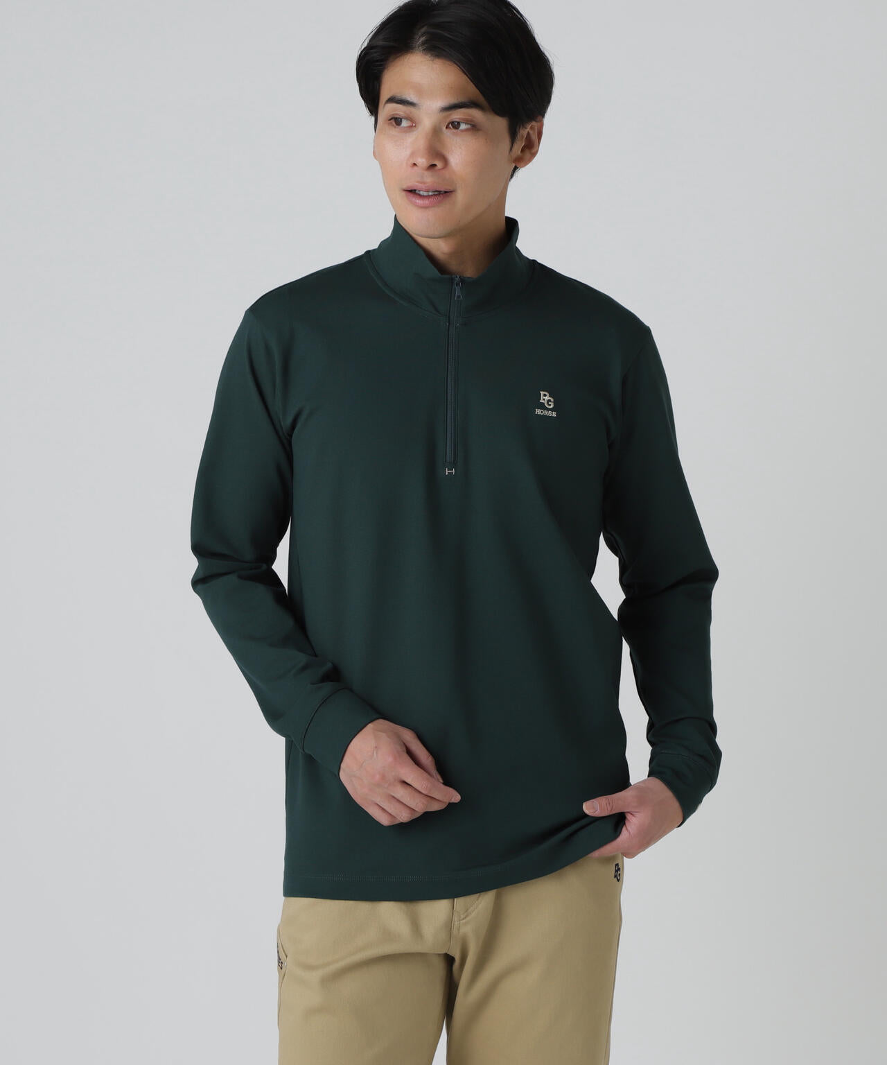 【PGHORSE】ソフトフィールポンチ長袖ハーフジップカットソー