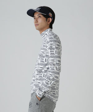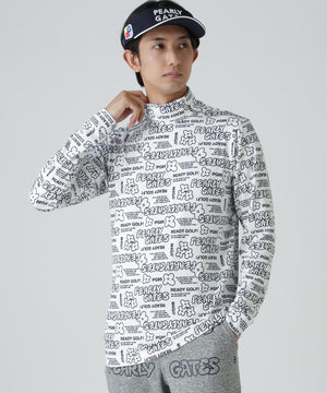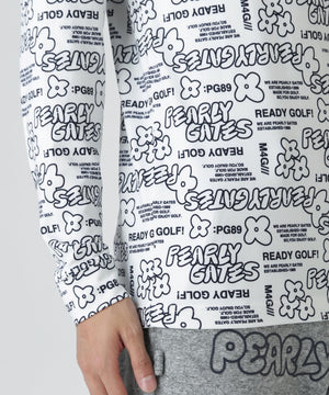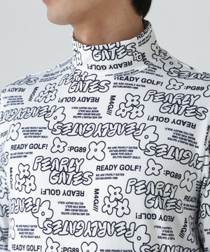 裏起毛ベア天竺長袖ハイネックカットソー <ロゴ×花柄プリント>