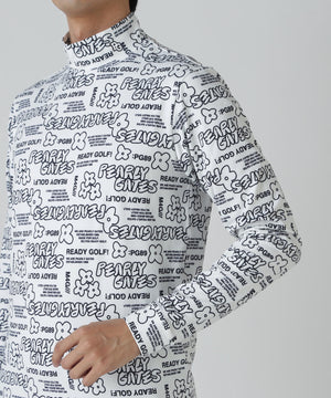 着膨れしない裏起毛のふんわりとした風合いで温かさを保つ、ロゴ×花柄プリント裏起毛ベア天竺長袖ハイネックカットソー。