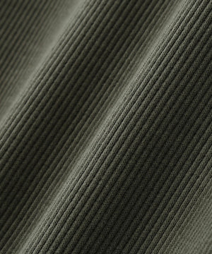 縦方向に畝のある編み目が特徴の、体の動きに自然にフィットするリブ編みで仕立てたモックネックアイテムです。