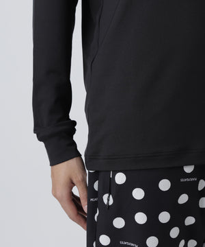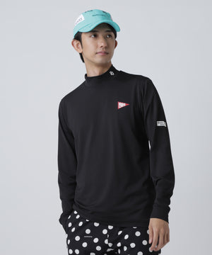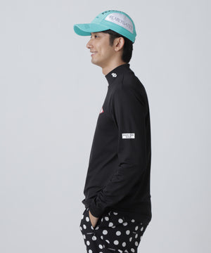 高い伸縮性と優れた吸水速乾性を持つゴルフに最適なソフトタッチな生地を使用した、37.5ベア天竺長袖ハイネックカットソー。