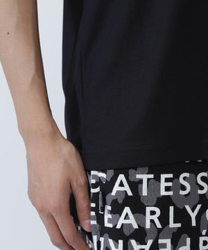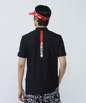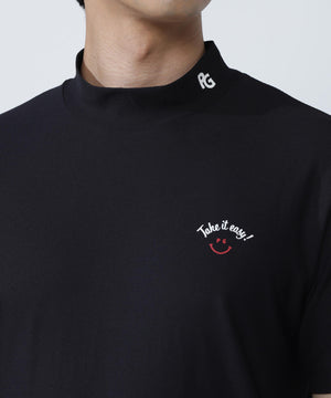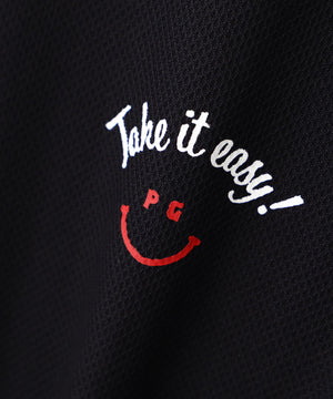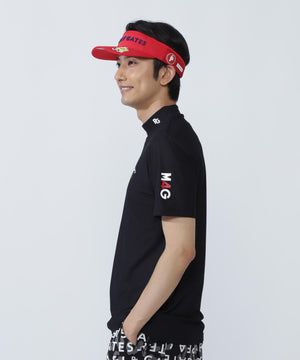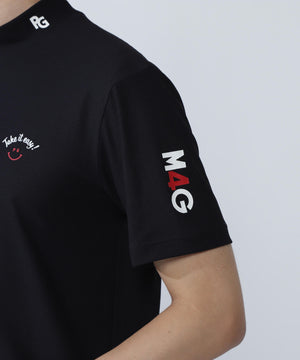 清涼感のある生地にPGのさまざまなロゴモチーフを入れてアクセントを効かせた、ハニカムカノコ半袖モックネックカットソー。