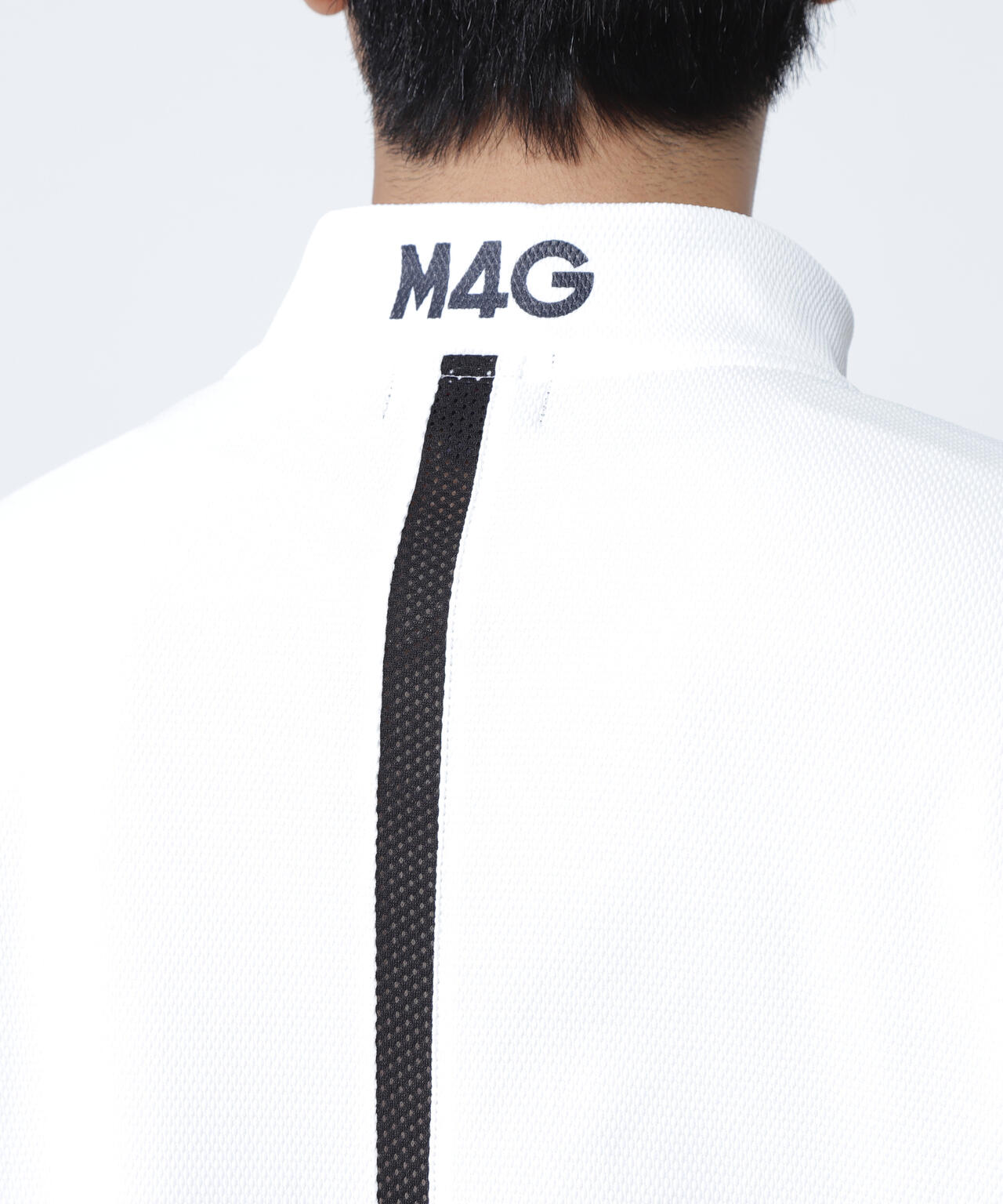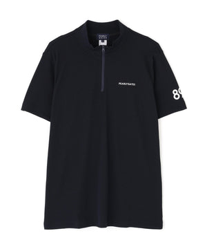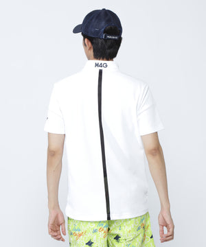 風通しがよくサラッとした肌触りの素材を使用した、ポップコーンカノコ×メッシュ半袖ハイネックカットソー。