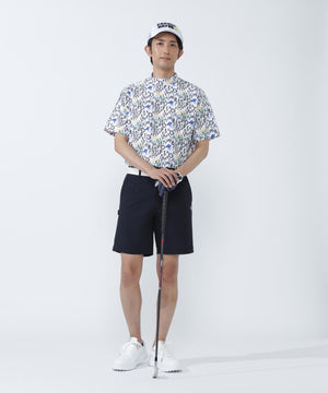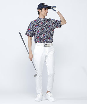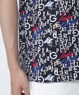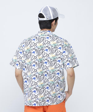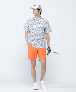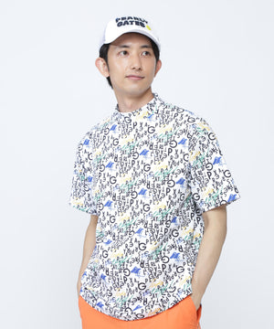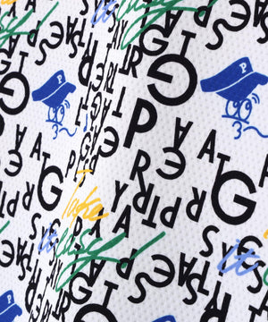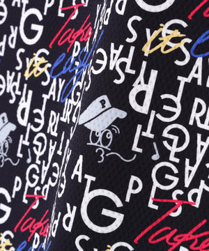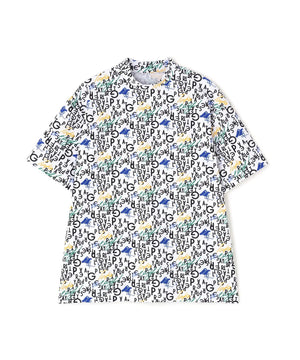BALLくんと変化をつけたPGロゴを組み合わせて遊び心たっぷりに表現した、BALLくんロゴ総柄プリント半袖モックネックカットソー。