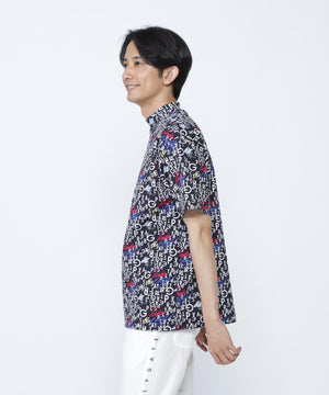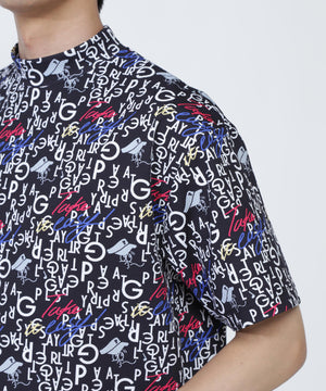 BALLくんロゴ総柄プリント半袖モックネックカットソー