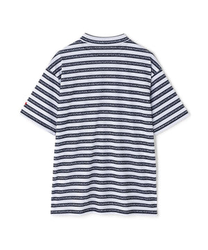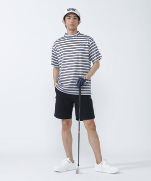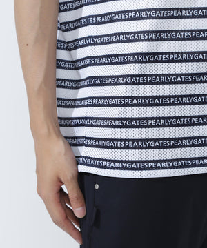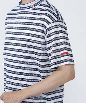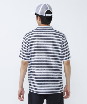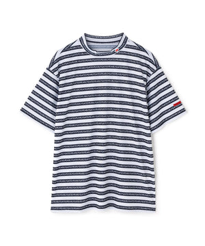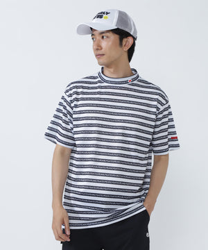 KAZEメッシュ半袖モックネックカットソー <ロゴボーダー柄>