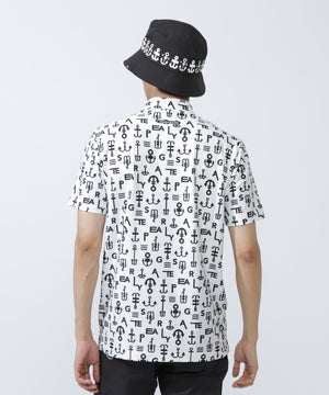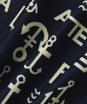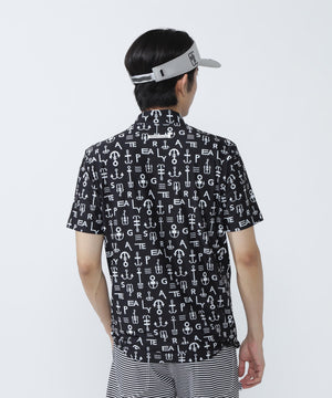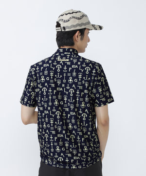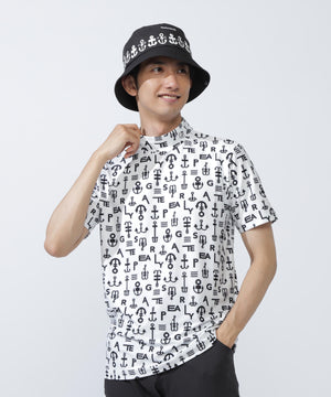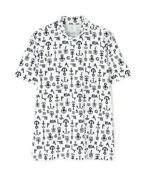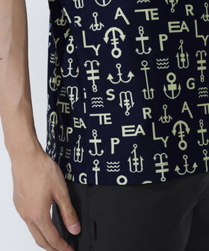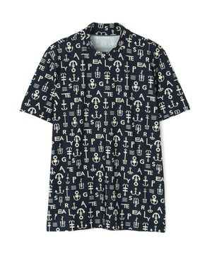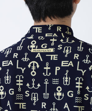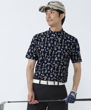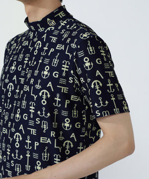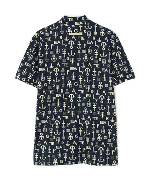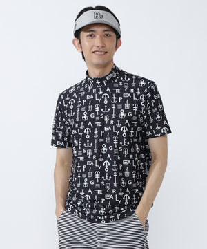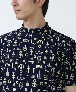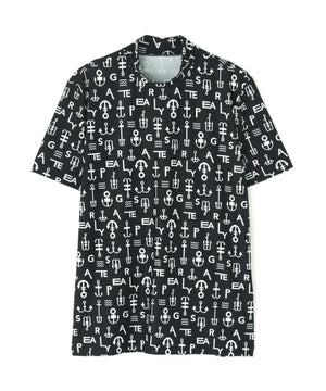アンカーロゴ柄プリント半袖モックネックカットソー