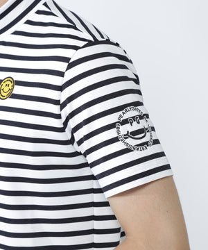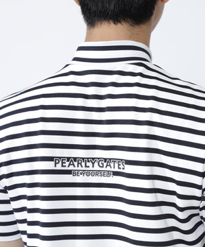 フロントロゴでスポーティーなインパクトを与えた、ボーダー柄 PG is PG ベアカノコ半袖ハイネックカットソー。