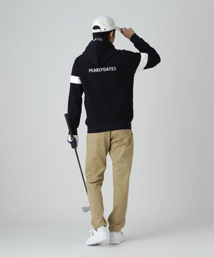 また、ドロストやフードの縁のロゴをアウターからみせて着こなせば、ゴルフ気分が高まるコーディネートも叶います。