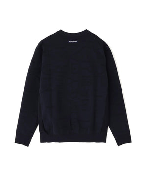 14Gクルーネックニットプルオーバー <ジャガードロゴ総柄>