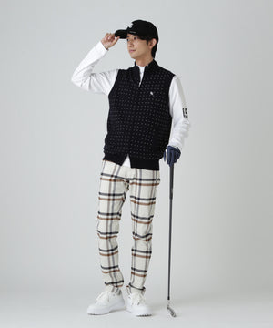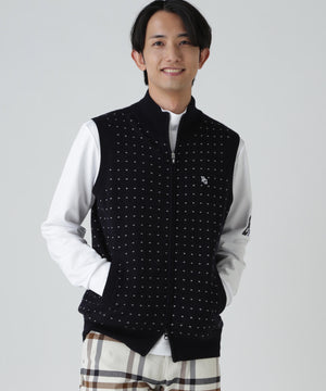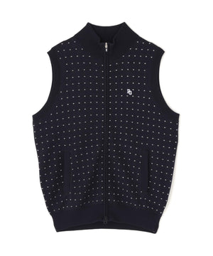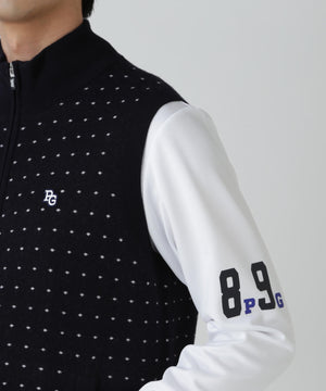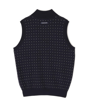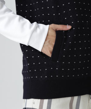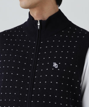 14Gダブルジャガードカシミヤ混フルジップニットベスト <ミニドット柄>