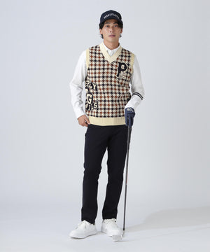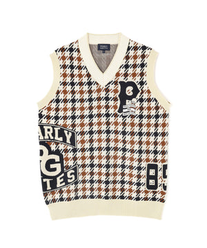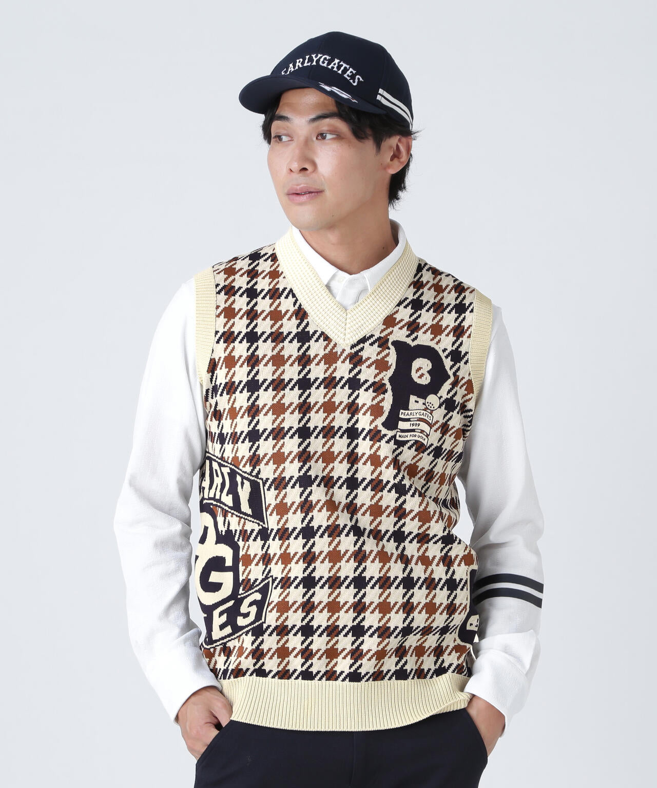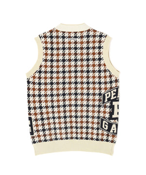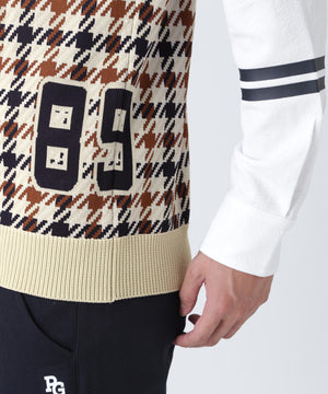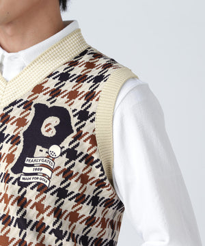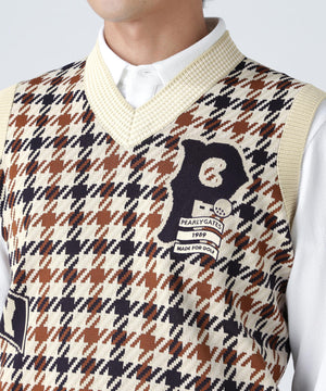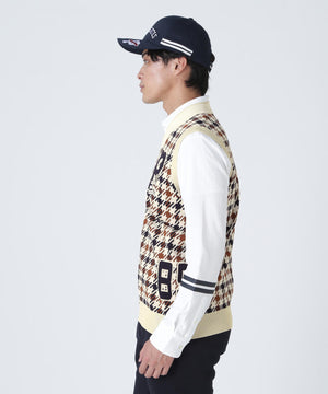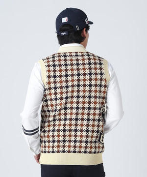 14GジャガードVネックニットベスト <ガンクラブチェック柄>