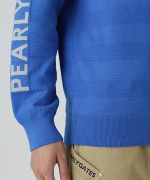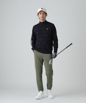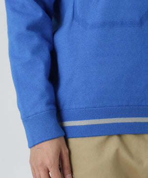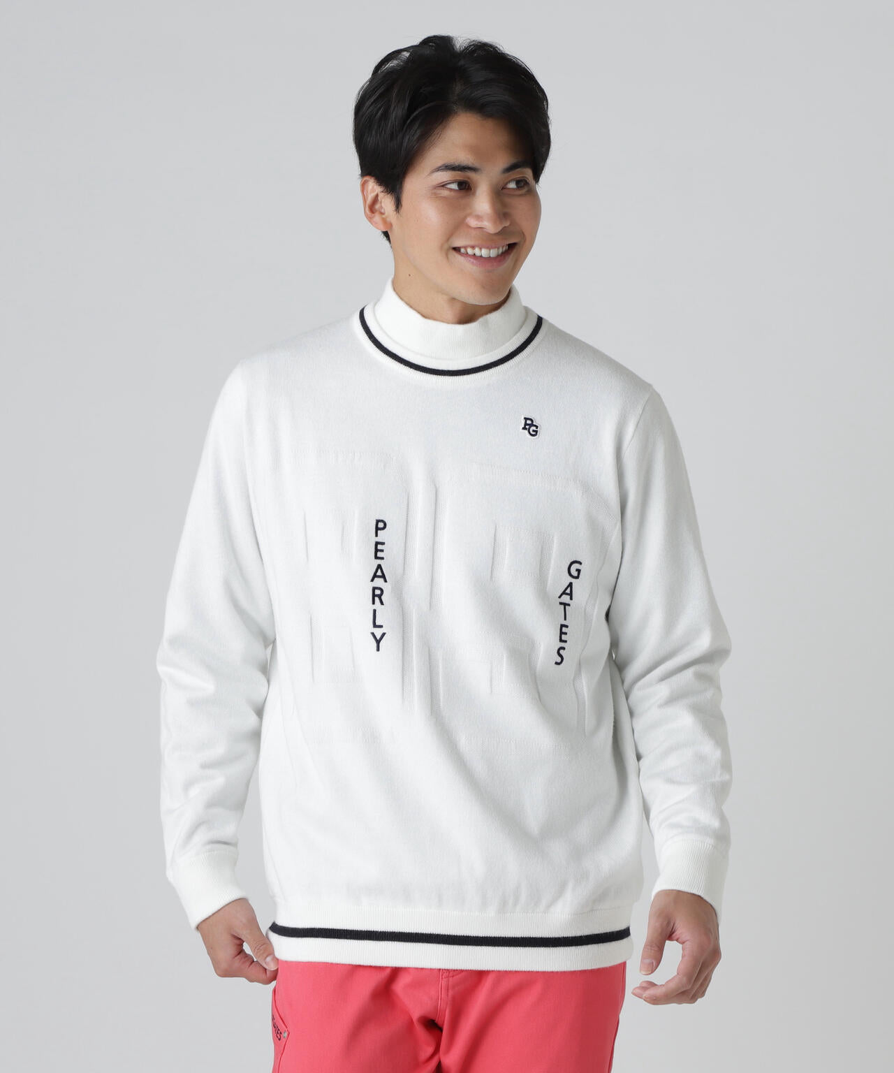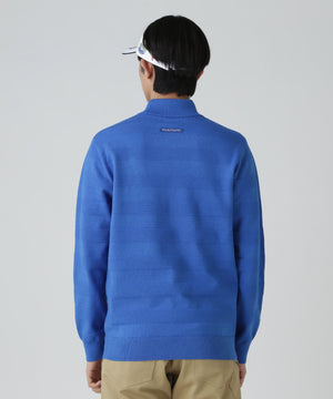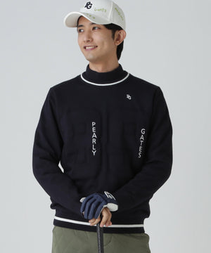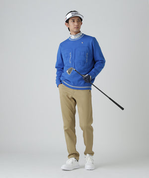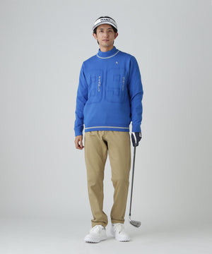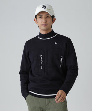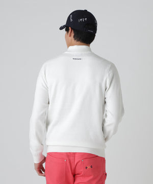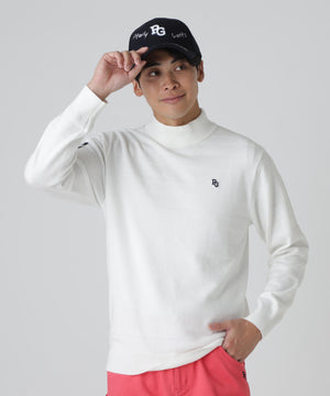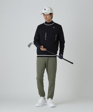 天候の変わりやすいゴルフシーンのコーデや天候に合わせて色々な着方が快適に楽しめる、メッシュの裏地付きクルーネックニットプルオーバーとハイネックインナーをレイヤードした2点セットアイテムです。