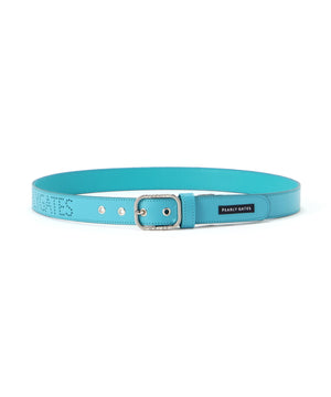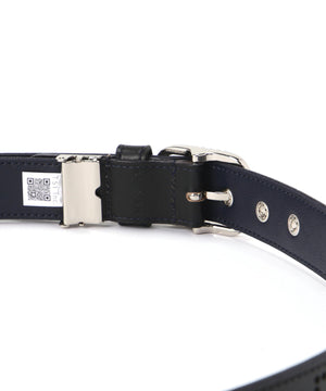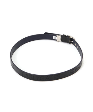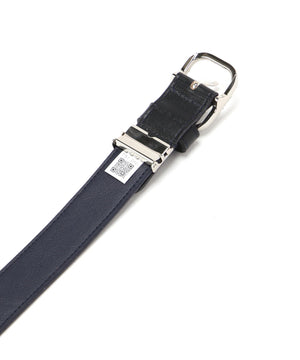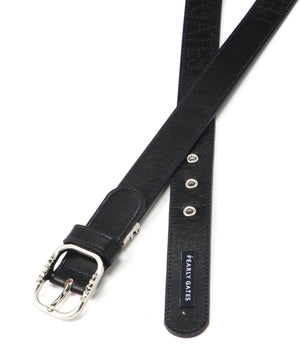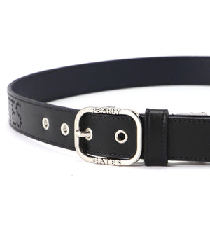 ベルト帯のドットロゴとハトメのベルト穴がポイントの、ドットロゴレザーベルト。