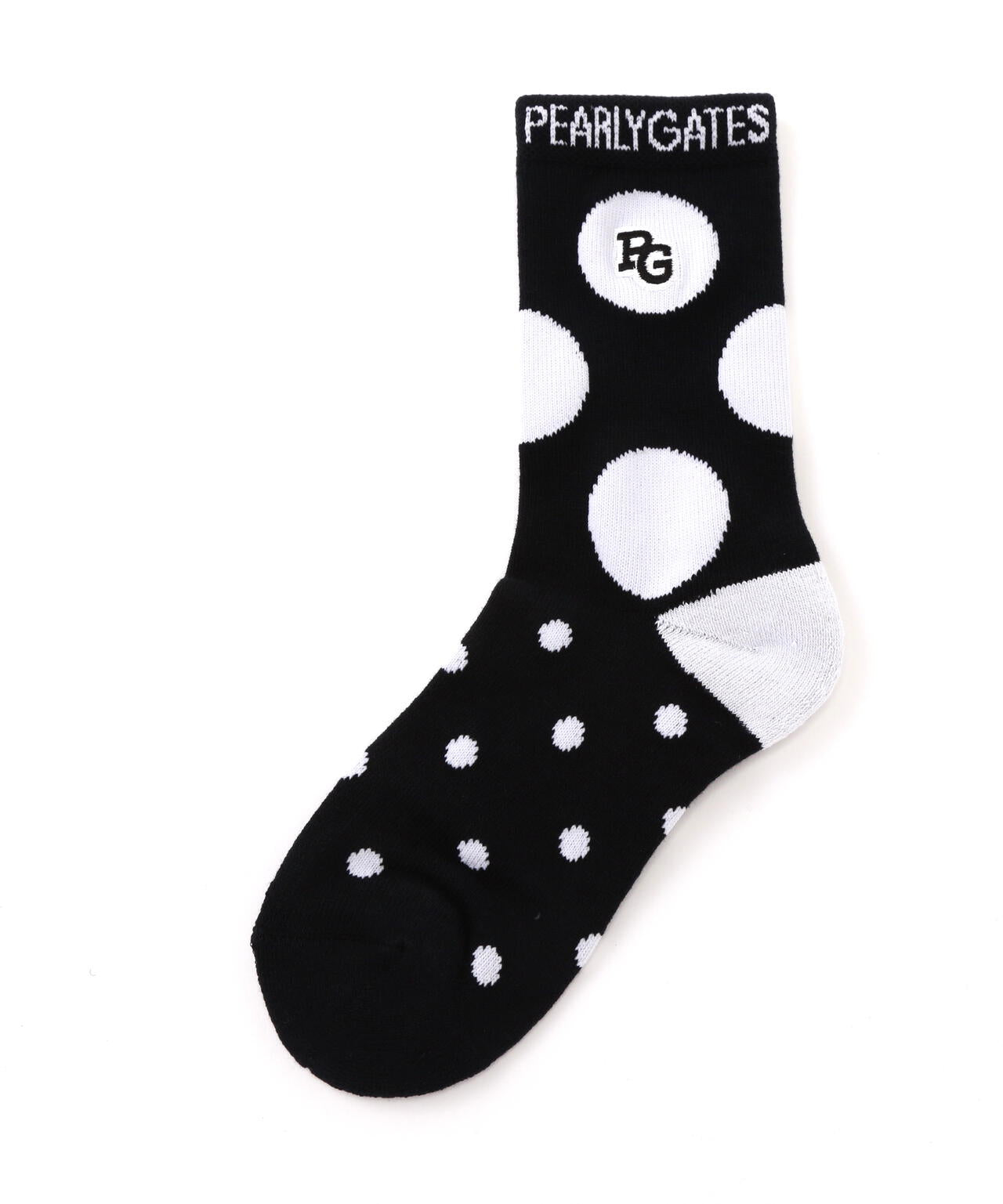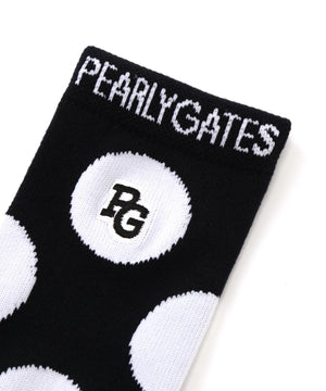 サイズを違いのドットやフォントを変えたPGロゴを組み合わせて、青空が似合うスポーツテイストを高めたミドルソックスです。