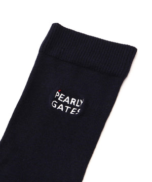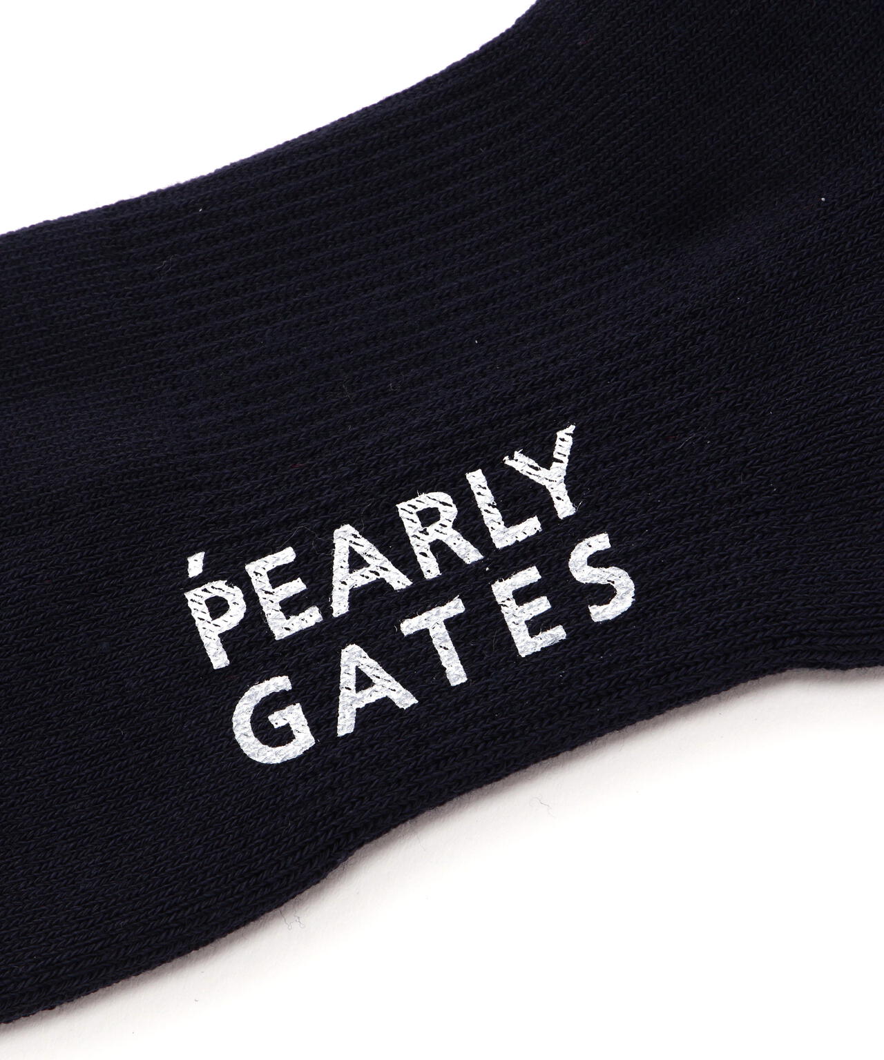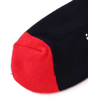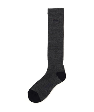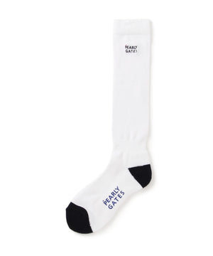 ミニスカートやショートパンツと相性抜群の、2段ロゴハイソックス。