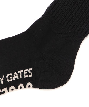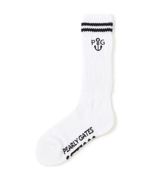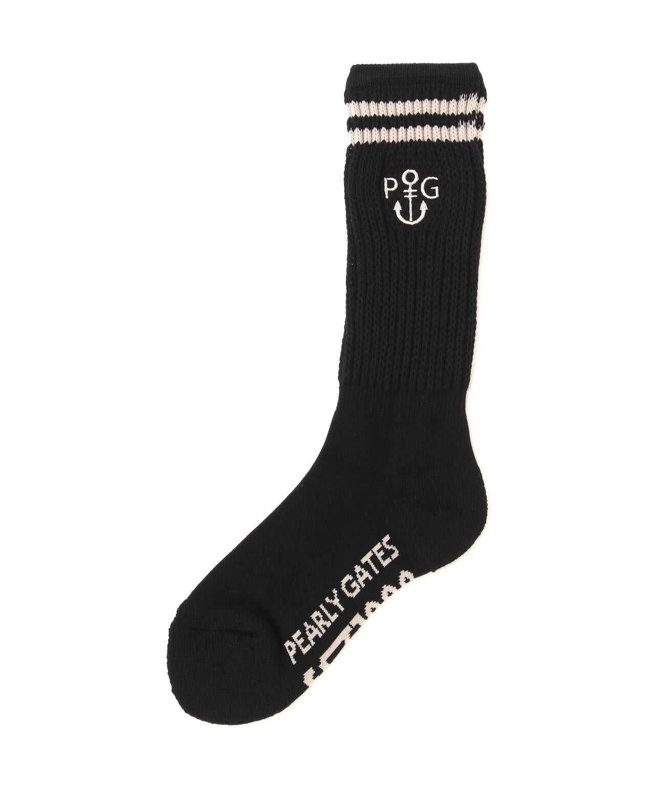 足入れ口の2ラインがスポーティーなアクセントになった、アンカーロゴ刺繍ルーズ調ミドルソックス。