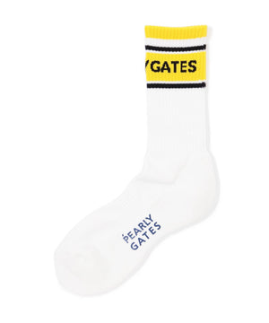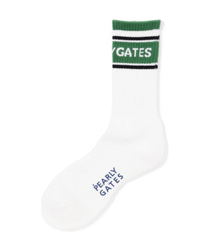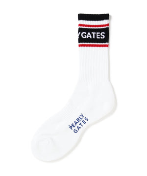 配色ラインがポイントの、ロゴラインミドルソックス。