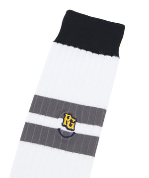 ラインを入れてスポーツテイストが高まる印象を与えた、ラインニーハイソックス。