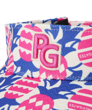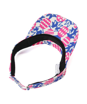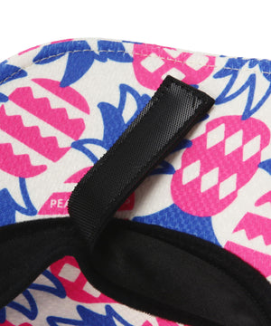 かぶるだけでコーディネートに華やかさのプラスと手軽に紫外線対策ができる、パイナップル柄バイザー。