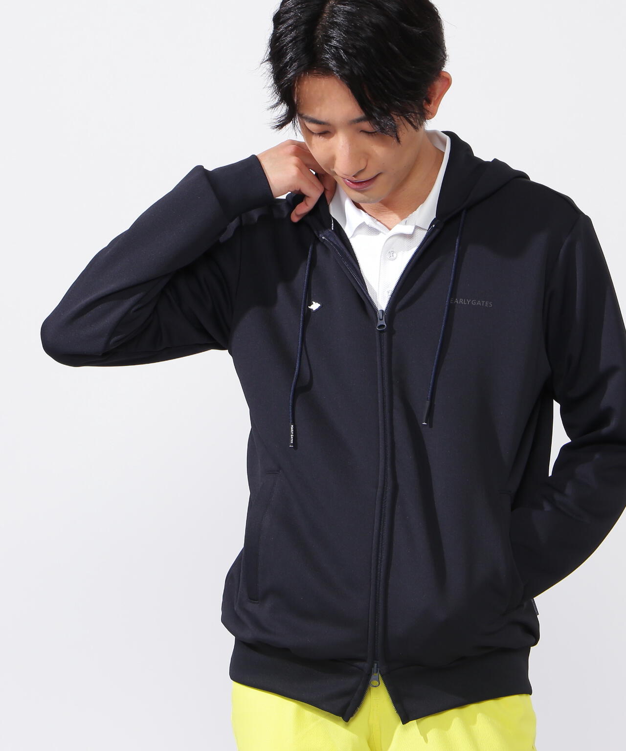 フライングラビットがポイントの、直営店舗&公式オンライン限定 PG ESSENTIAL ハイスペックコンパクト裏毛フルジップフーディ。今季リニューアルしたPEARLY GATES ESSENTIALは、ゴルフが本来持っているエレガントさや優雅さという本質に改めて向き合い、価値観にふさわしいアイテムとして進化を続けています。ヴィンテージを彷彿とさせる仕立て映えするコンパクトな質感が美しい適度にハリコシがしっかりある、ゆったりと着られてスッキリ見える美シルエットのフルジップアップフーディ。長期化する酷暑への対応をテーマに、ドライタッチな心地よさが続く吸汗速乾性や通気性を高めた清涼感のある素材を使用しています。ゴルフはもちろんアウトドアなど日常をシームレスに楽しめるように、より一層のデザイン性と機能性をを追求した魅力的なアイテムに仕上がっています。
