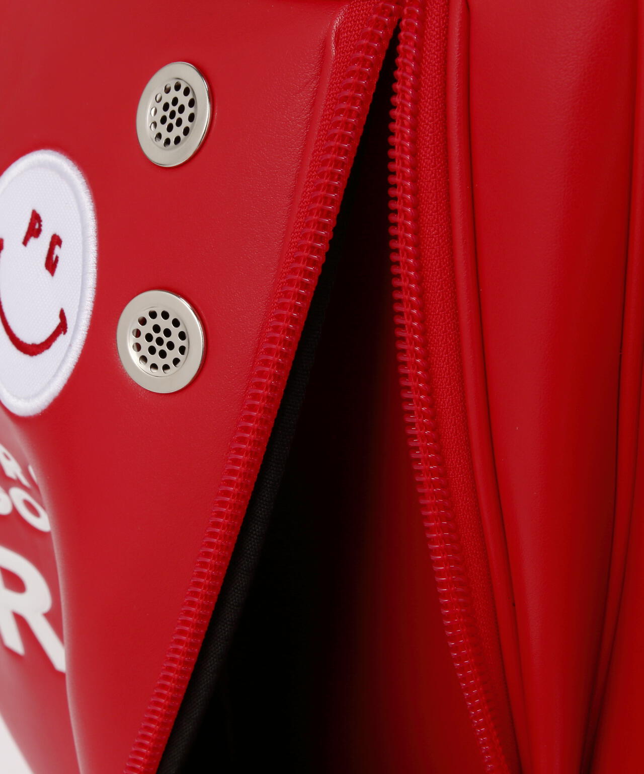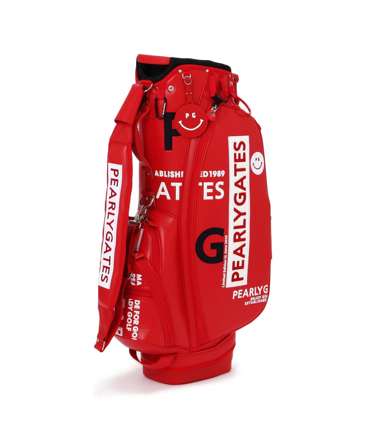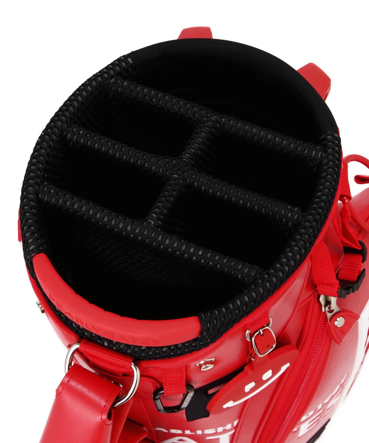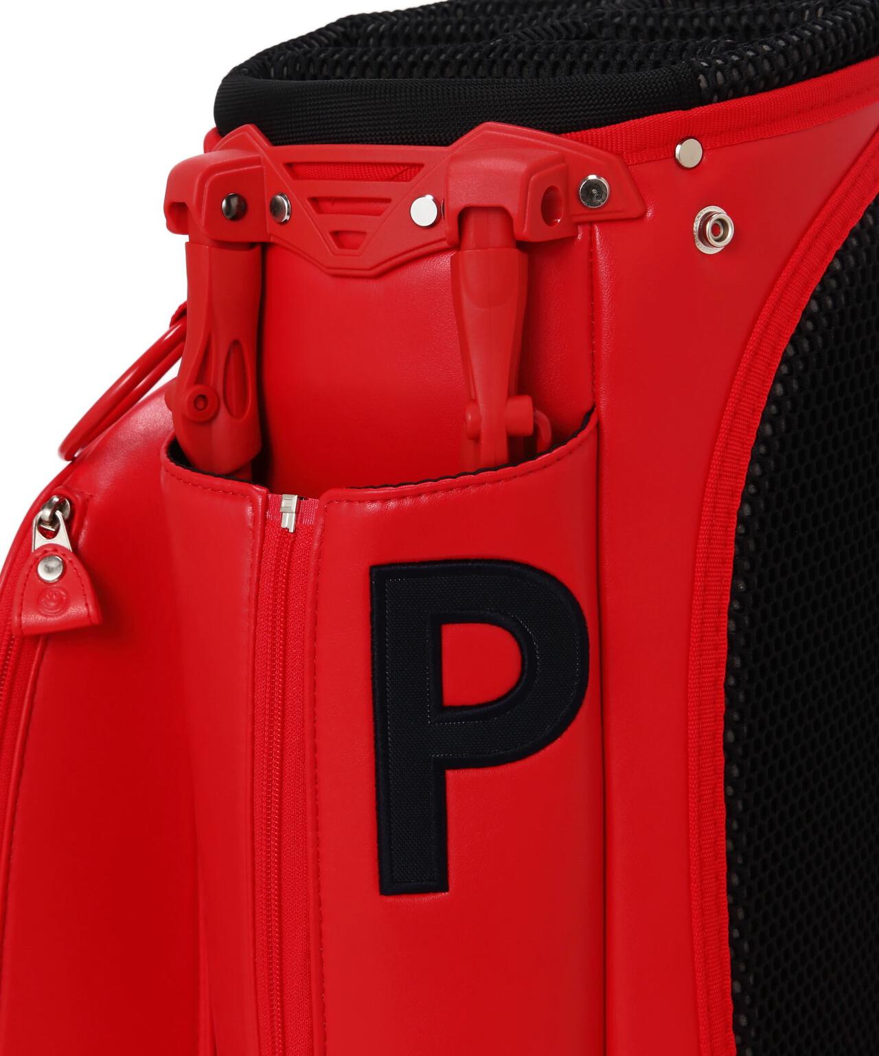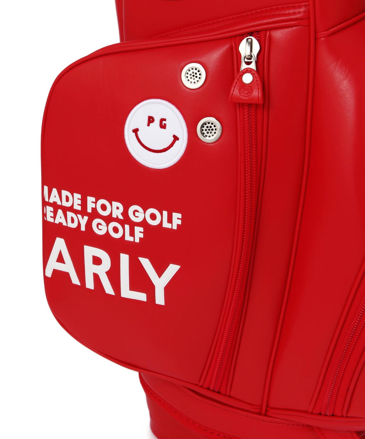 健康効果が期待できるトマトのリコピンを想起させる鮮やかなレッドに ホワイトのPG SMILEやPGロゴで爽やかなインパクトを与えた、デザイン性と使いやすさを両立したキャディバッグです。