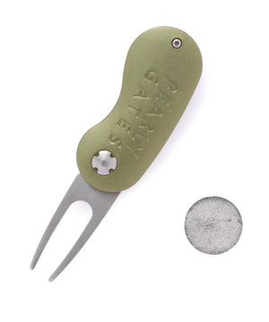 安全で便利な折り畳み式のグリーンフォークと、デザイン違いの二つのマーカーを組み合わせたゴルフラウンドにマストなセットアイテム。