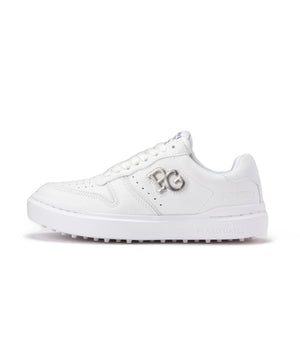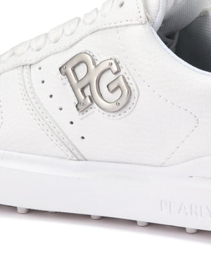 側面にクラス感を与える輝くPGステンレスプレートをあしらった、定番 THE SHOES スパイクレスゴルフシューズ。