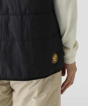 ベスト:(表生地)ナイロン 100%(詰物)ポリエステル 100%(裏生地)ナイロン 100%、ブルゾン:(表生地)ポリエステル 55% 複合繊維 (ポリエステル) 45%(リブ部分)ポリエステル 97% ポリウレタン 3%(裏生地)ポリエステル 98% ナイロン 2%