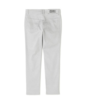 脚のラインがスッキリ見えするテーパードシルエットで仕立てた、PG is PG 変形ダイヤ柄C/Peストレッチカルゼ5ポケットパンツ。