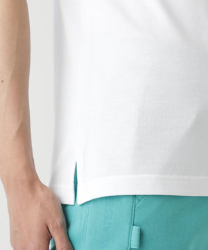 繊維長が非常に長い超長綿を使用した、カノコ組織のカットソー素材で作られた半袖ポロシャツ。