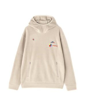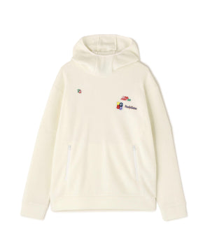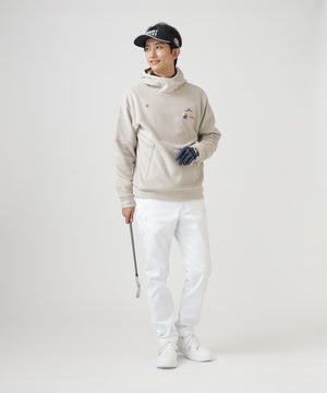 冬ゴルフのホリデイ気分を一気に盛り上げてくれる新しいフォントやワッペン風のロゴをバランスよくレイアウトした、レーヨンブレンドストレッチフリースフーディプルオーバー。