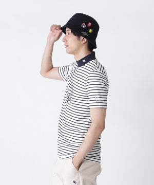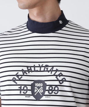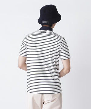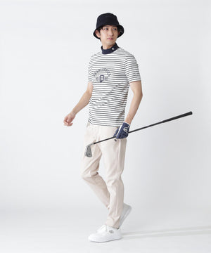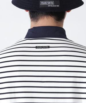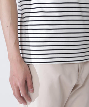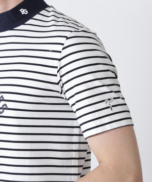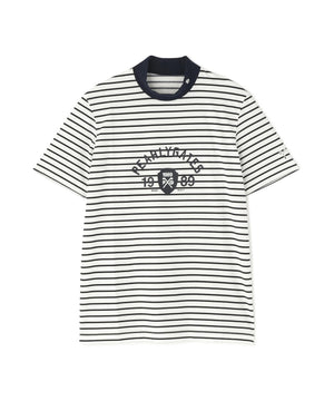 ドライな風合いと通気性に優れた機能素材を使用した、ボーダー柄ベアカノコ半袖ハイネックカットソー。