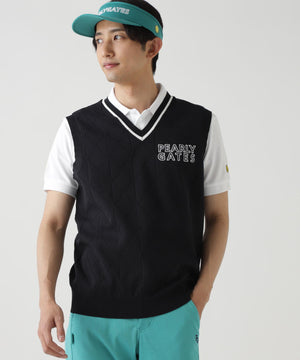 ラインやロゴでスポーティーなインパクトを与えた、PG is PG ロゴジャガードVネックニットベストプルオーバー。