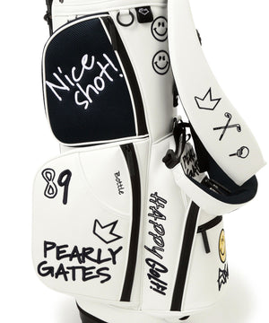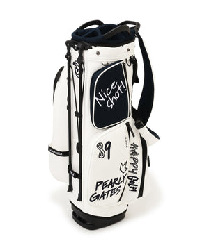 POPなフォントやワッペン風のロゴでゴルフのホリデイ気分を一気に盛り上げてくれる、46インチ対応 NICO合皮スタンド式キャディバッグ。